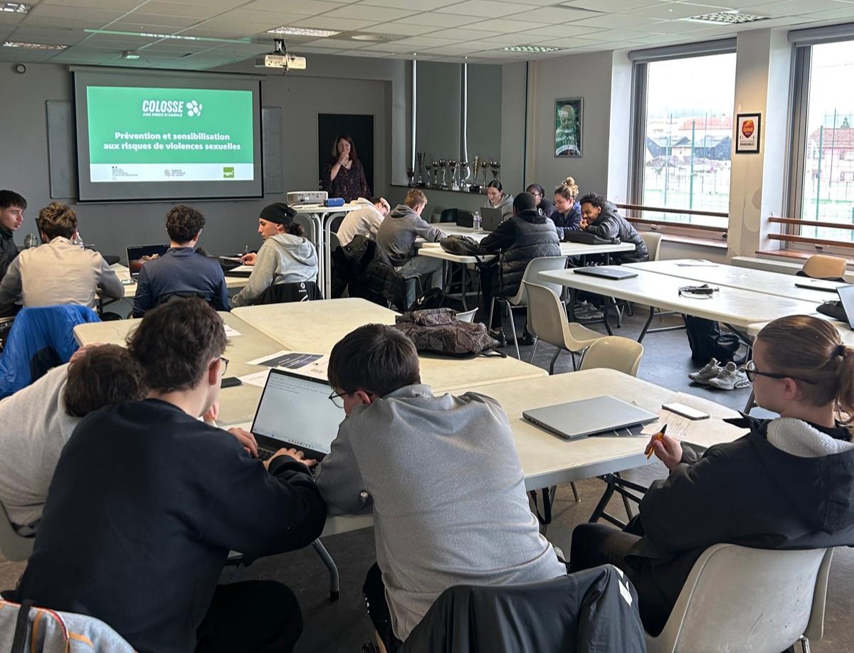 Dans le cadre de leur formation, les stagiaires BPJEPS ont récemment participé à une intervention de prévention et de sensibilisation aux risques de violences sexuelles animée par une intervenante de l’association Colosse aux pieds d’argile, structure reconnue au niveau national pour son engagement dans la protection des mineurs et la lutte contre les violences sexuelles en milieu sportif. Cette rencontre avait pour objectif de fournir aux futurs éducateurs sportifs des outils concrets pour identifier, comprendre et prévenir les situations à risque, mais également pour adopter les bons réflexes face à une éventuelle révélation de victime.
