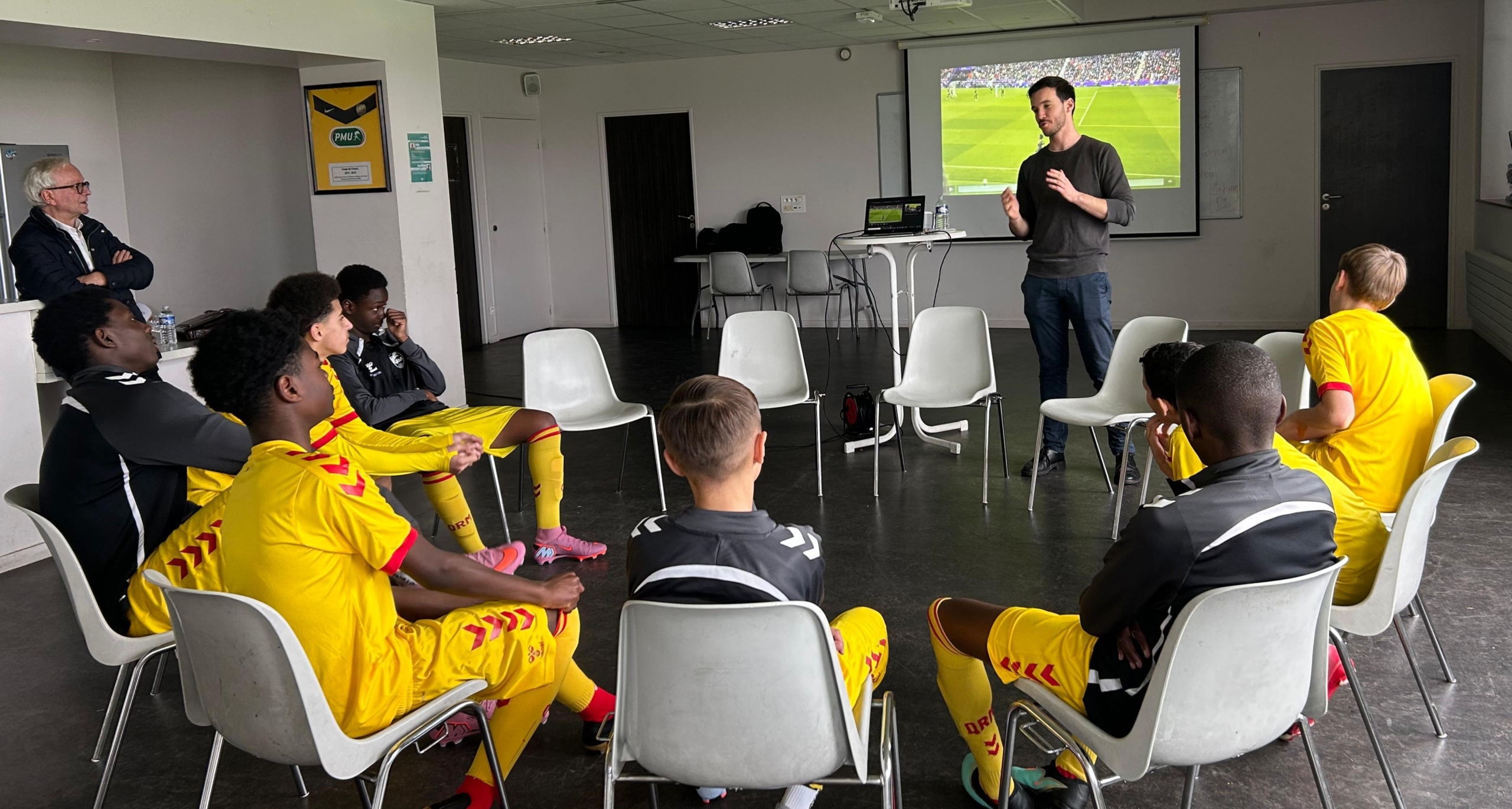 Les joueurs U15 et U14 ont quant à eux bénéficié d’une intervention menée par un représentant de la LICRA (Ligue Internationale Contre le Racisme et l’Antisémitisme) par petit groupe, association historique engagée dans la lutte contre toutes les formes de discrimination, de racisme et de haine. Cette action de sensibilisation visait à encourager les jeunes sportifs à développer un esprit critique, à comprendre les mécanismes de stigmatisation et à promouvoir les valeurs de respect et d’inclusion sur et en dehors des terrains.