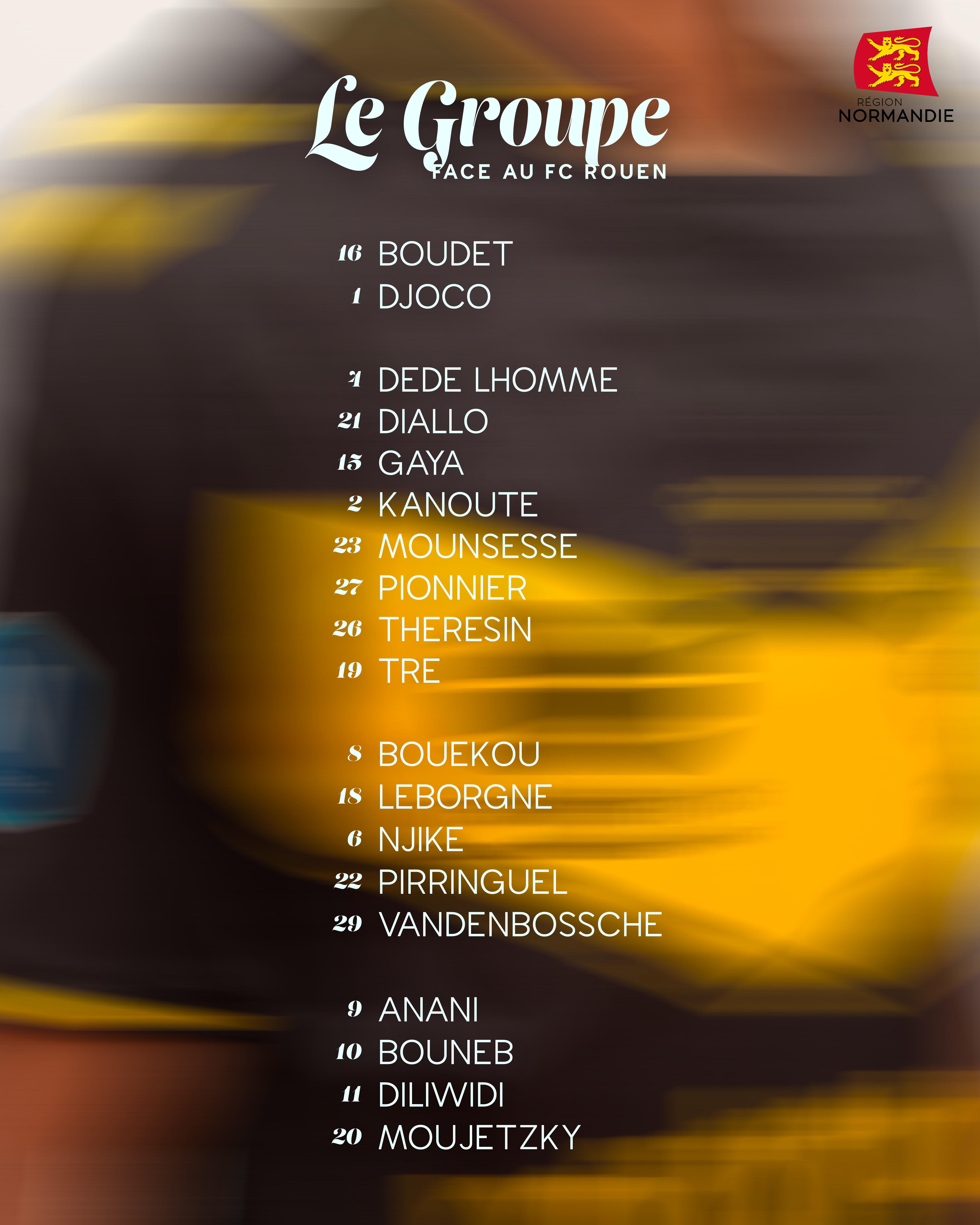 Le groupe convoqué face au FC Rouen (J16) 👥