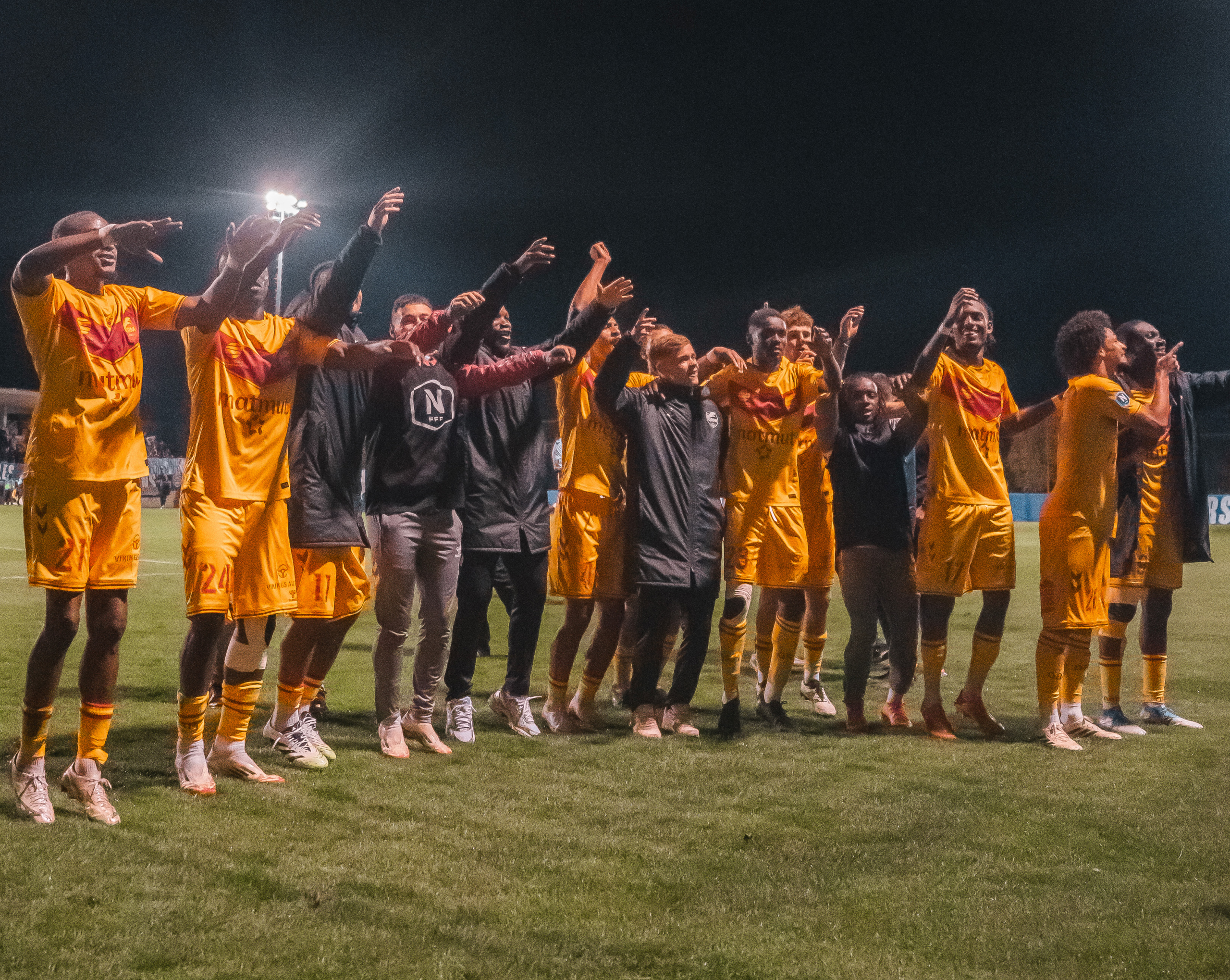 Les Rouge & Jaune, célébrant leur succès 2-1 au Camp des Loges en septembre dernier.